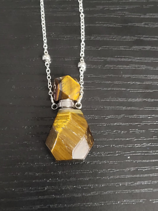Perfume Bottle and Heart Necklace with Silver-tone Chain